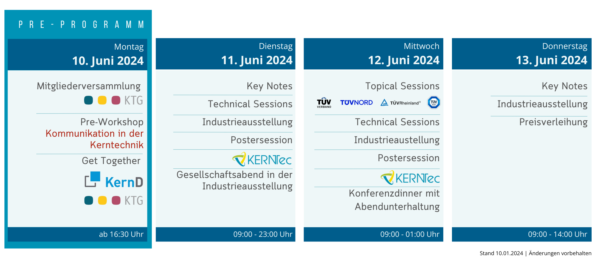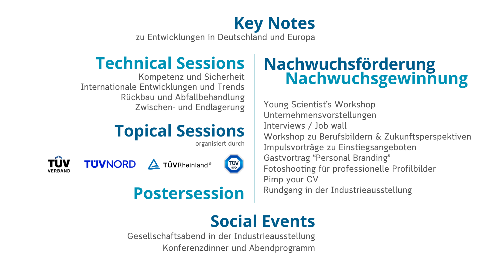Als Teilnehmer der KERNTECHNIK 2024 erwartet Sie im Rahmen von 2,5 Tagen eine umfangreiche Fachveranstaltung die sich mit den neuesten Entwicklungen und Forschungsergebnissen im Bereich der Kerntechnologie beschäftigt.